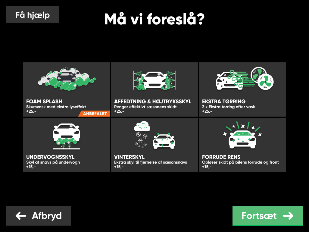 Wash World sells car washes throughout the Scandinavian countries. Customers arrive at a wash hall and order a car wash at a touch screen.